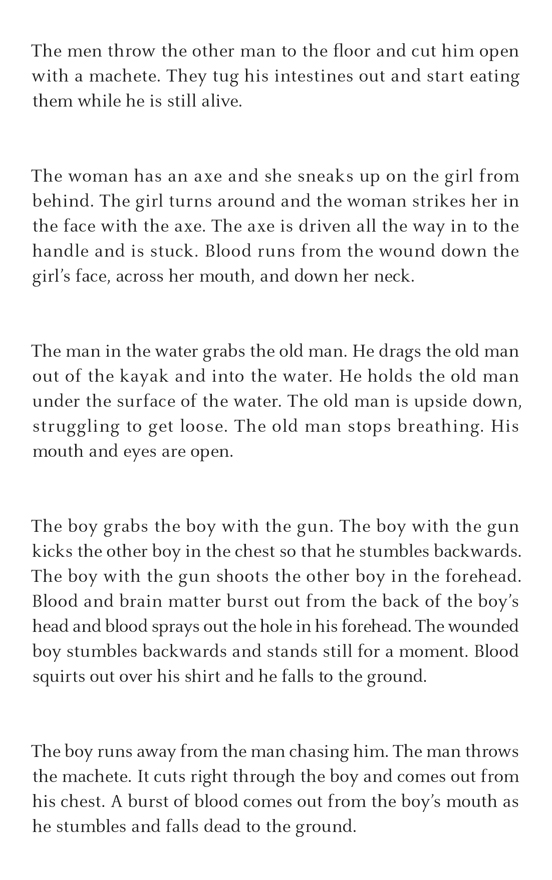 of more than three hundred distilled descriptions of violent scenes from horror films. In the