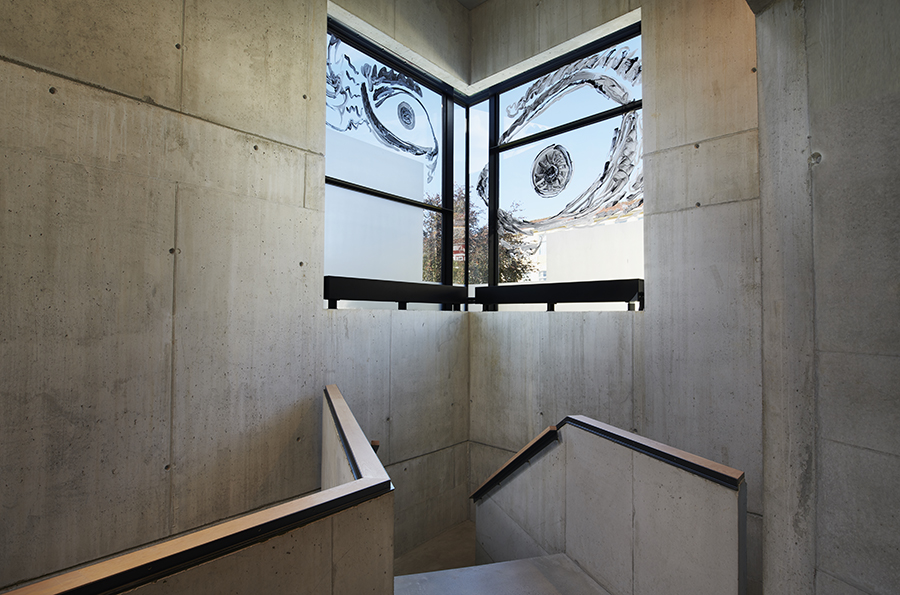 Fire station, outdoor concrete wall.