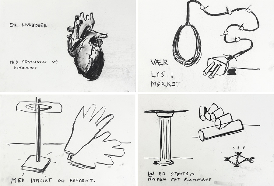 Series of drawings (signal-livredder-mørket-innsikt-støtte), 55x38 cm