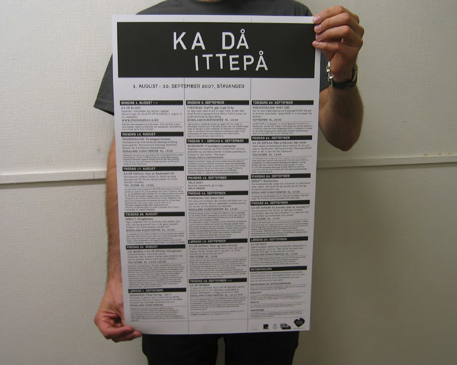 The third phase (2008) involved a blog in the city’s largest newspaper, Stavanger Aftenblad. During 2008, Stavanger2018 achieved in excess of 100 articles in the media about the project itself, and, articles including the query KA DÅ ITTEPÅ.